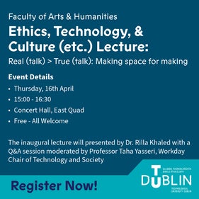 Curated and convened by Professor Taha Yasseri, Workday Chair of Technology and Society and sponsored by the Faculty of Arts & Humanities the etc. series serves as a forum for rigorous interdisciplinary inquiry into the evolving relationship between technological innovation and human experience.