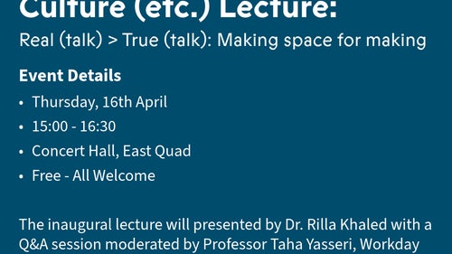 We welcome colleagues, students, industry partners, policy makers, and members of the wider community to what promises to be a stimulating lecture entitled: Real (talk) > True (talk): Making space for making presented by Dr. Rilla Khaled.